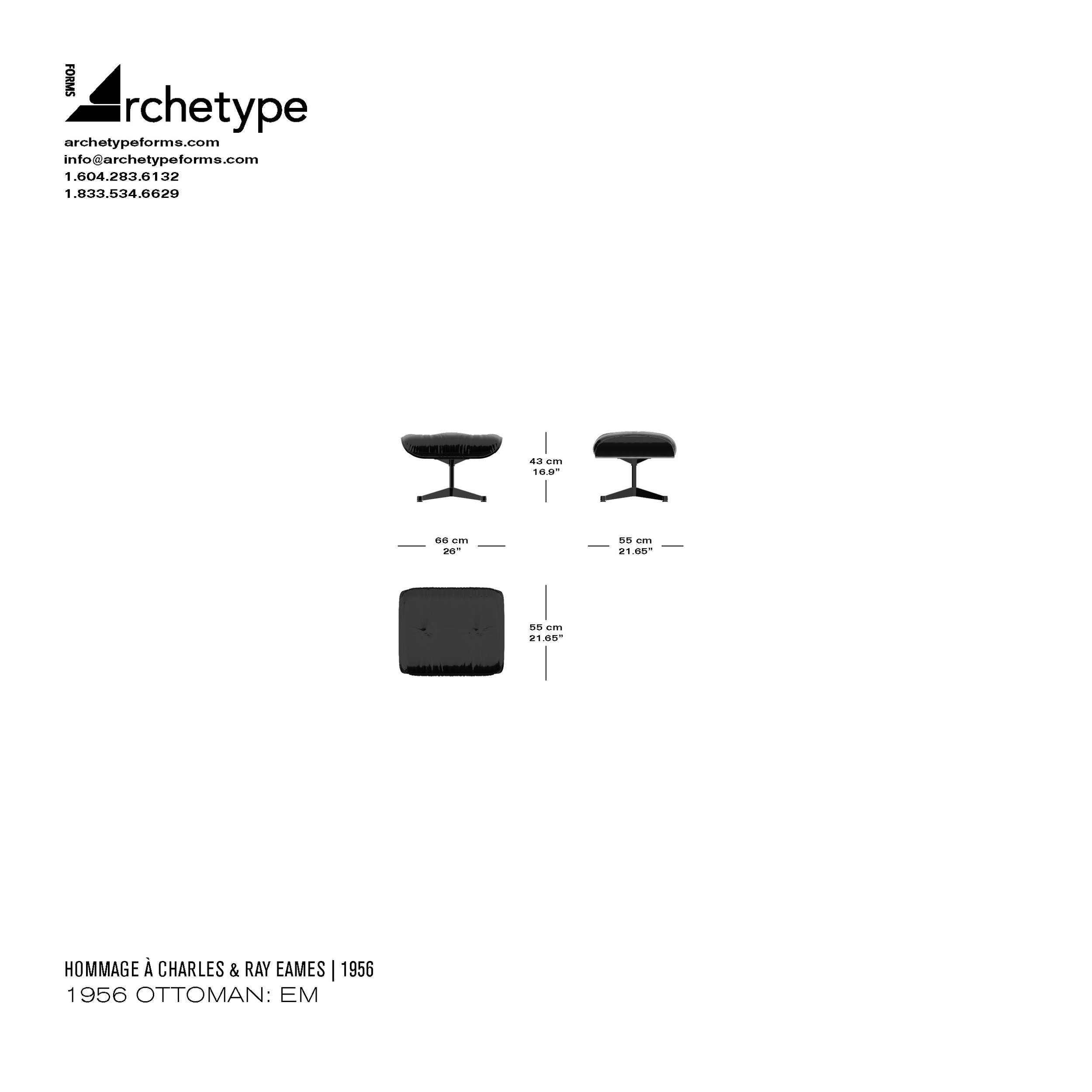 The Archetype Forms 1956 Ottoman: EM is a faithful reproduction of the original Charles & Ray Eames Ottoman Model 671 with European Base.
