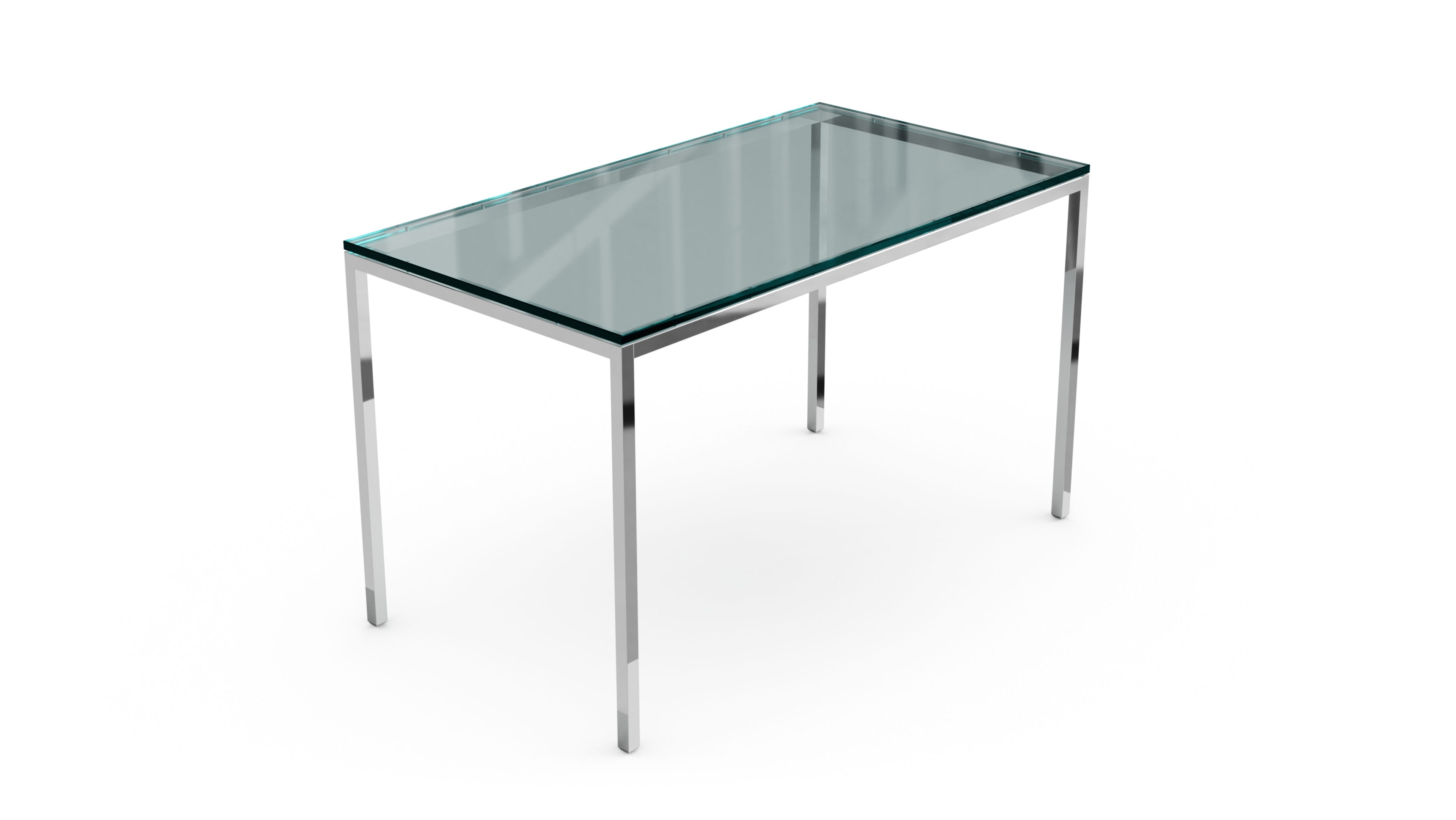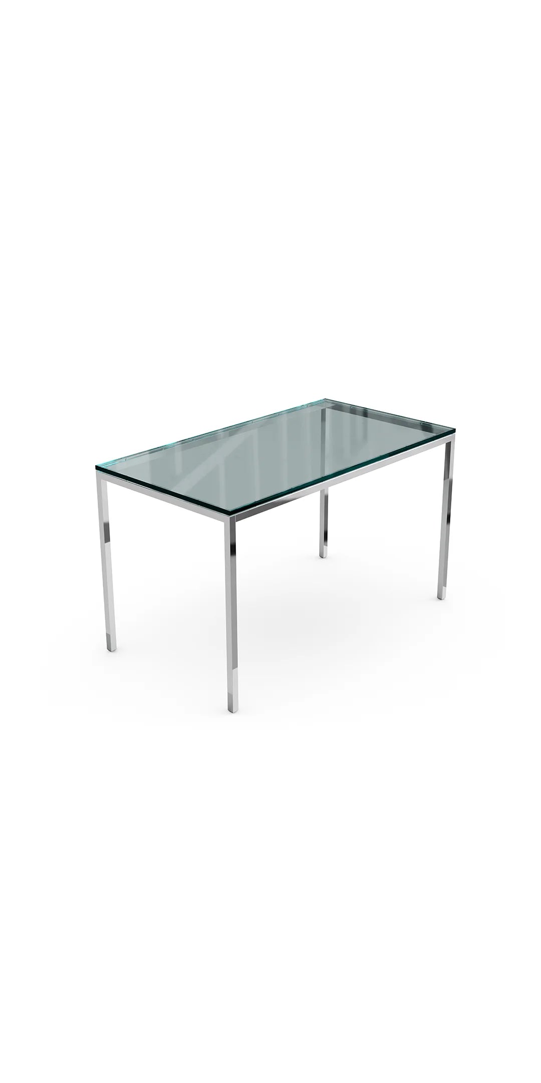 Shown in 48" x 26" Clear Tempered Glass Top on Polished Chrome Steel Base.