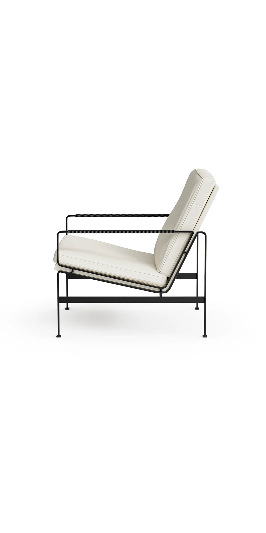Shown in Alabastro Italian Aniline Leather and Black Italian Aniline Leather Arm Lacing, on Powder Coat Black Steel Frame.