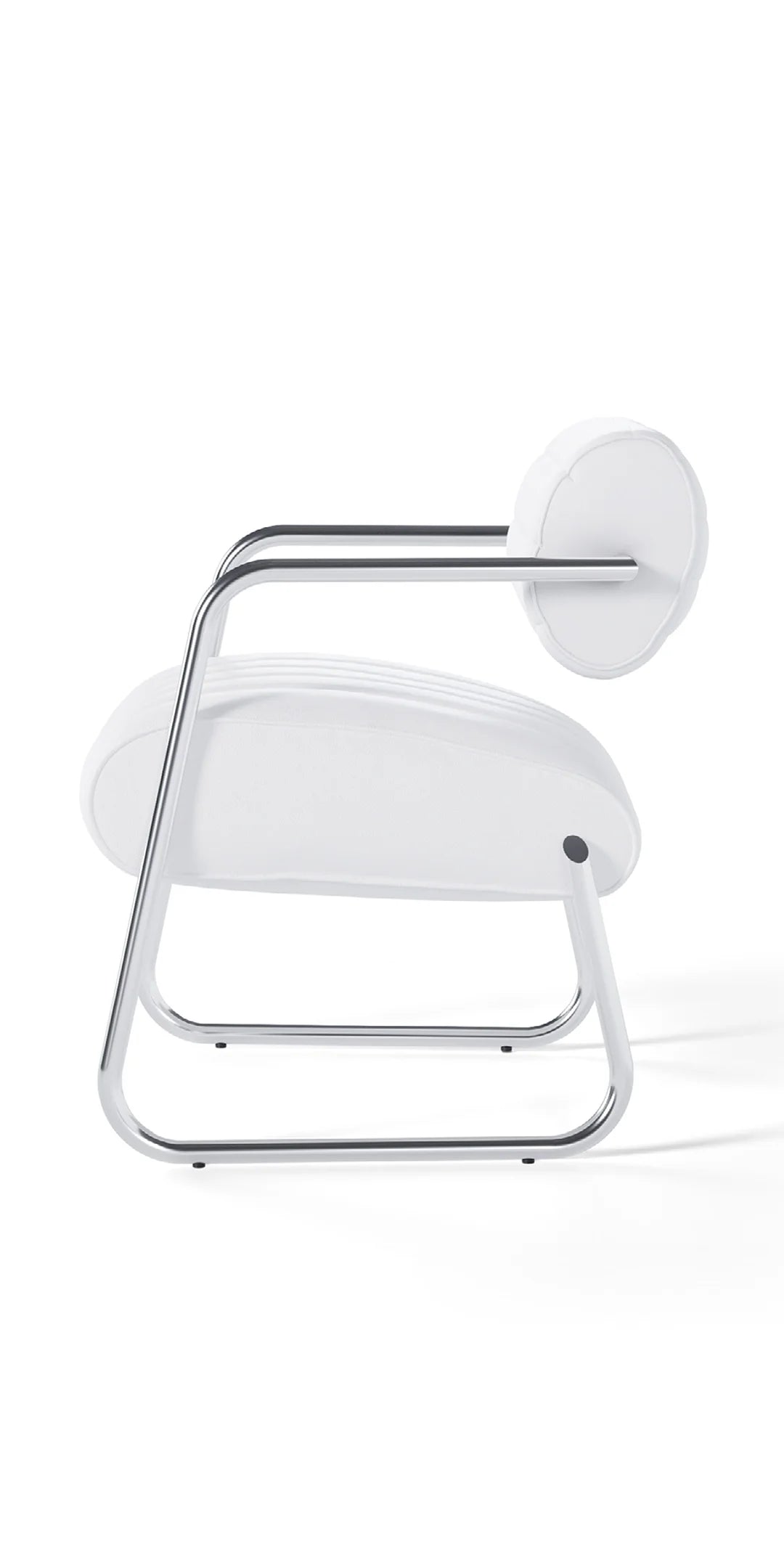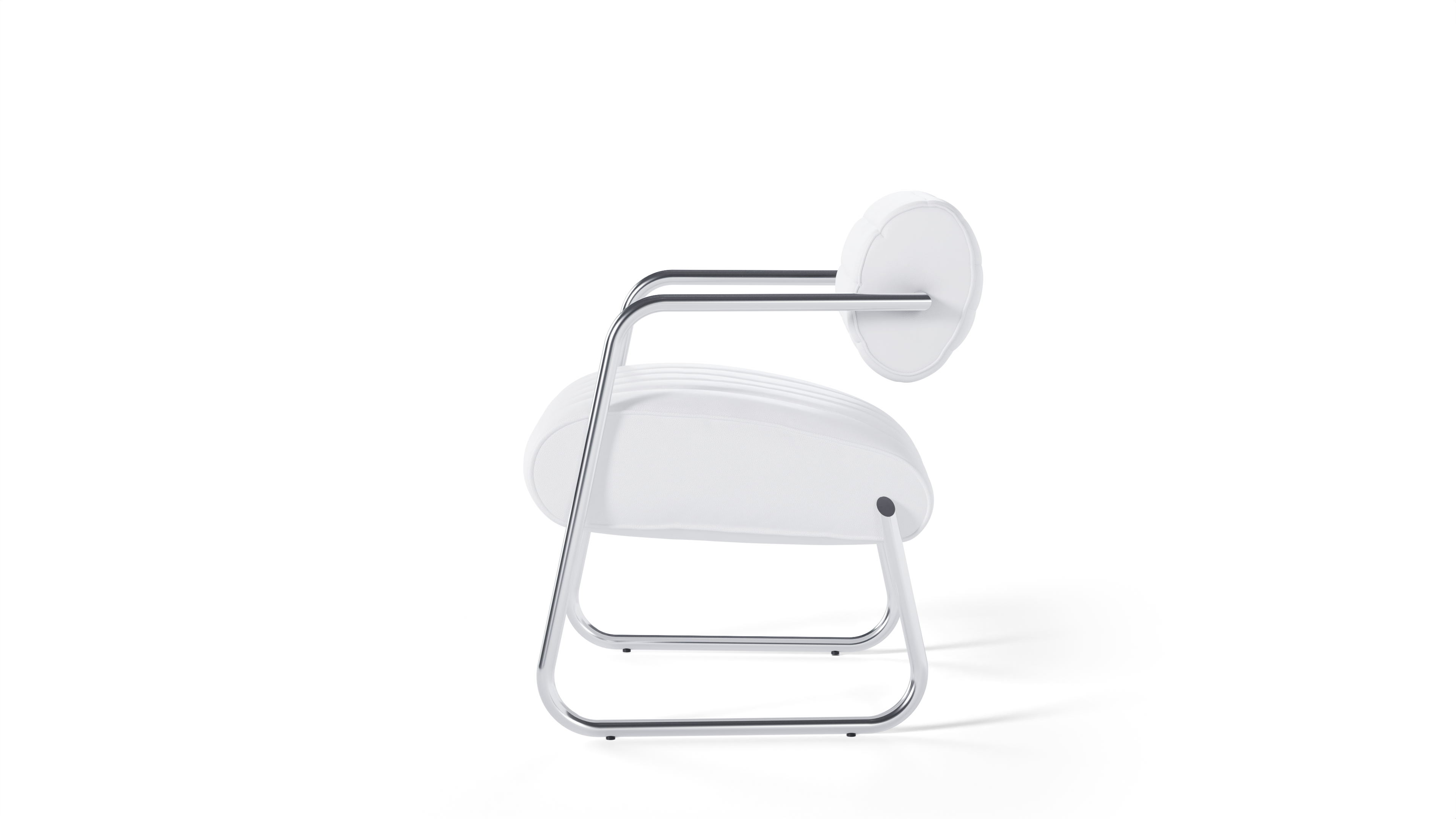 Shown in White Italian Aniline Leather on Polished Chrome Steel Base.