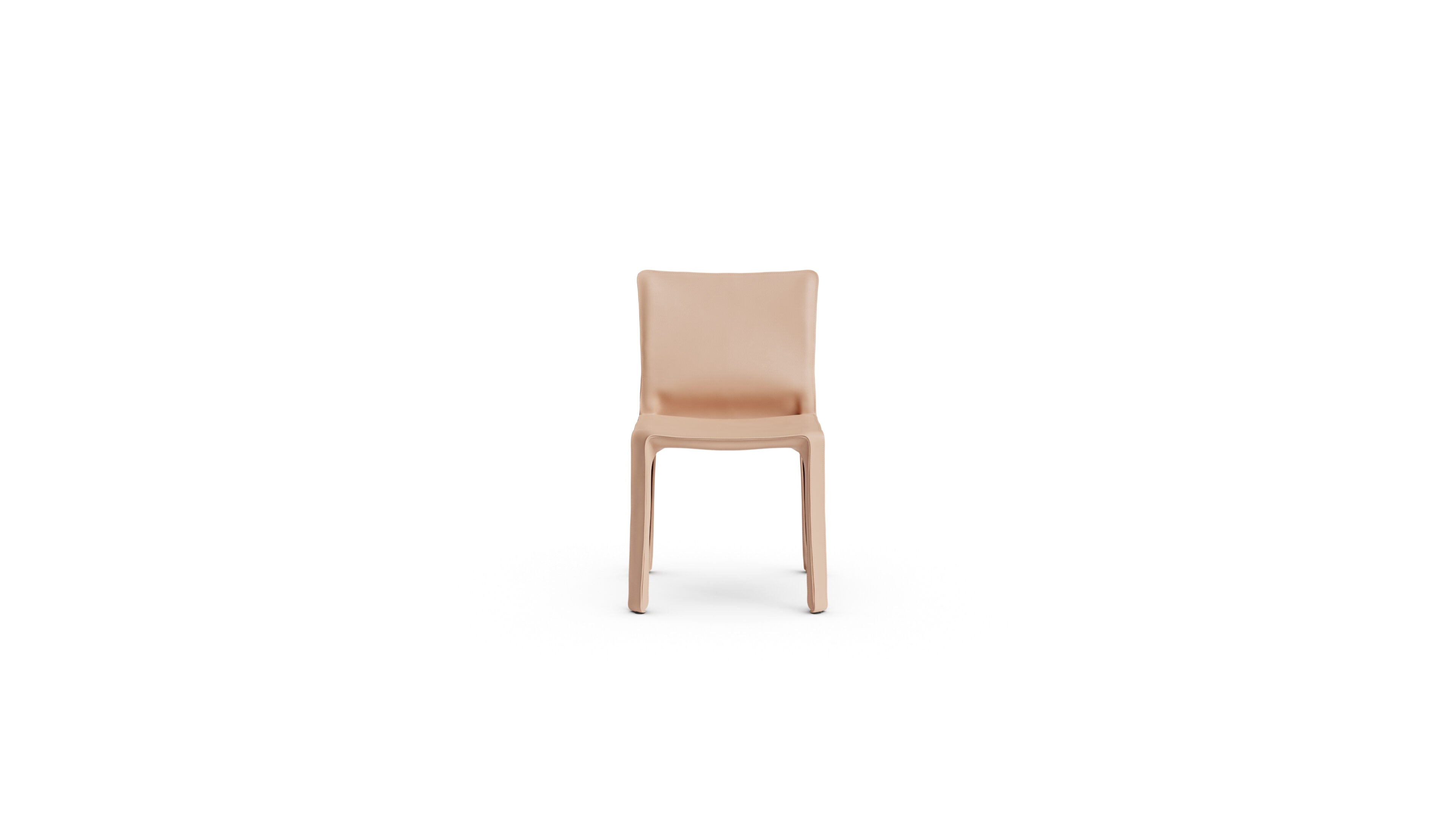 The Cab Cowhide Side Chair was originally designed by Mario Bellini and introduced in 1977. It was the first chair of its kind to feature a free-standing leather structure, inspired by the relationship between the human skeleton and skin.