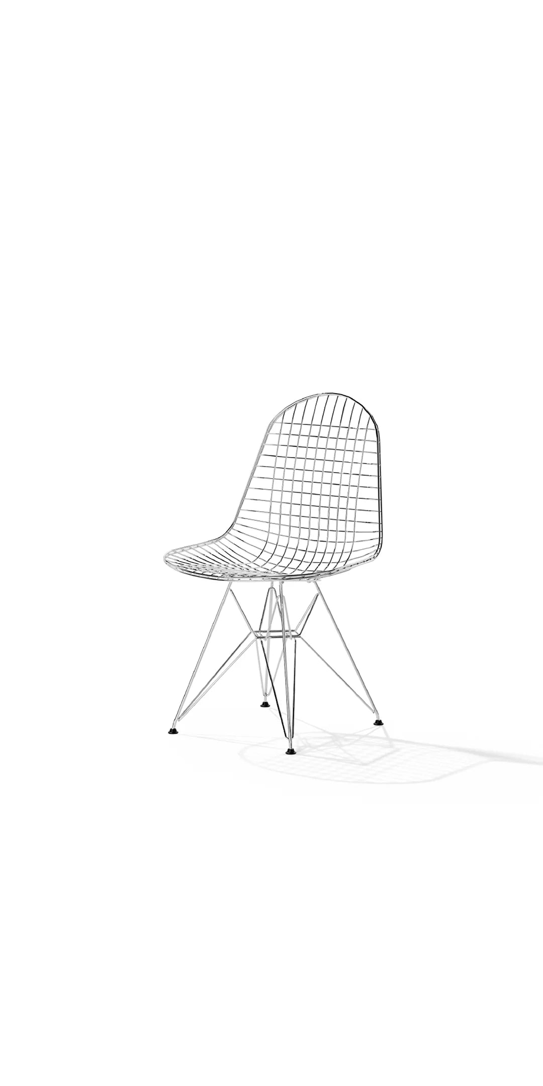 Originally designed by Charles and Ray Eames, the Eiffel Chair: Wire Seat features a contoured wire mesh design that provides strength and comfort without the need for upholstery.