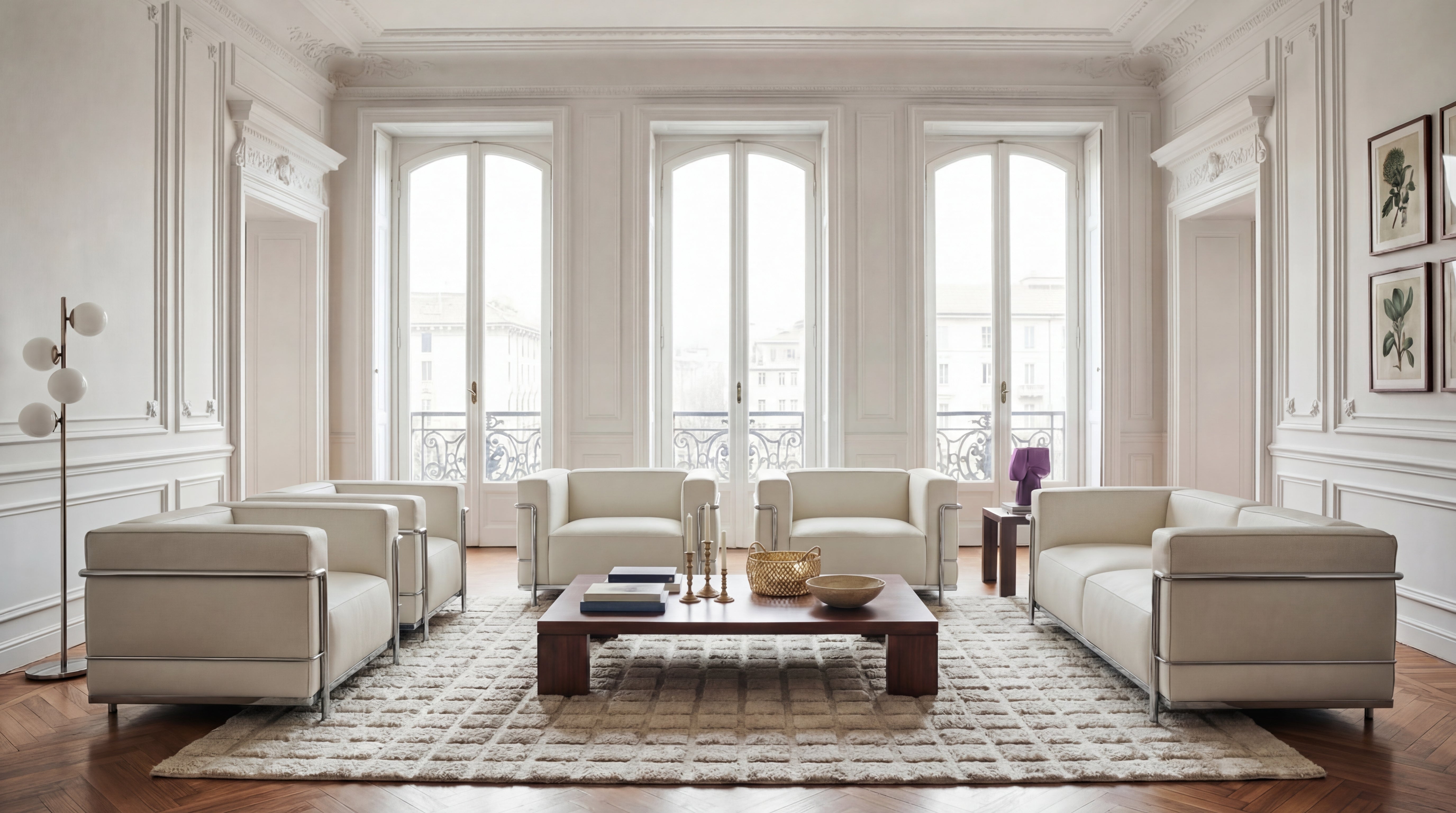 Le Corbusier's furniture designs, including the LC4 Chaise Longue (1928) and the LC3 Grand Confort Modèle Armchair (1928), exemplify his philosophy of functional, minimalist design and continue to influence contemporary interiors.