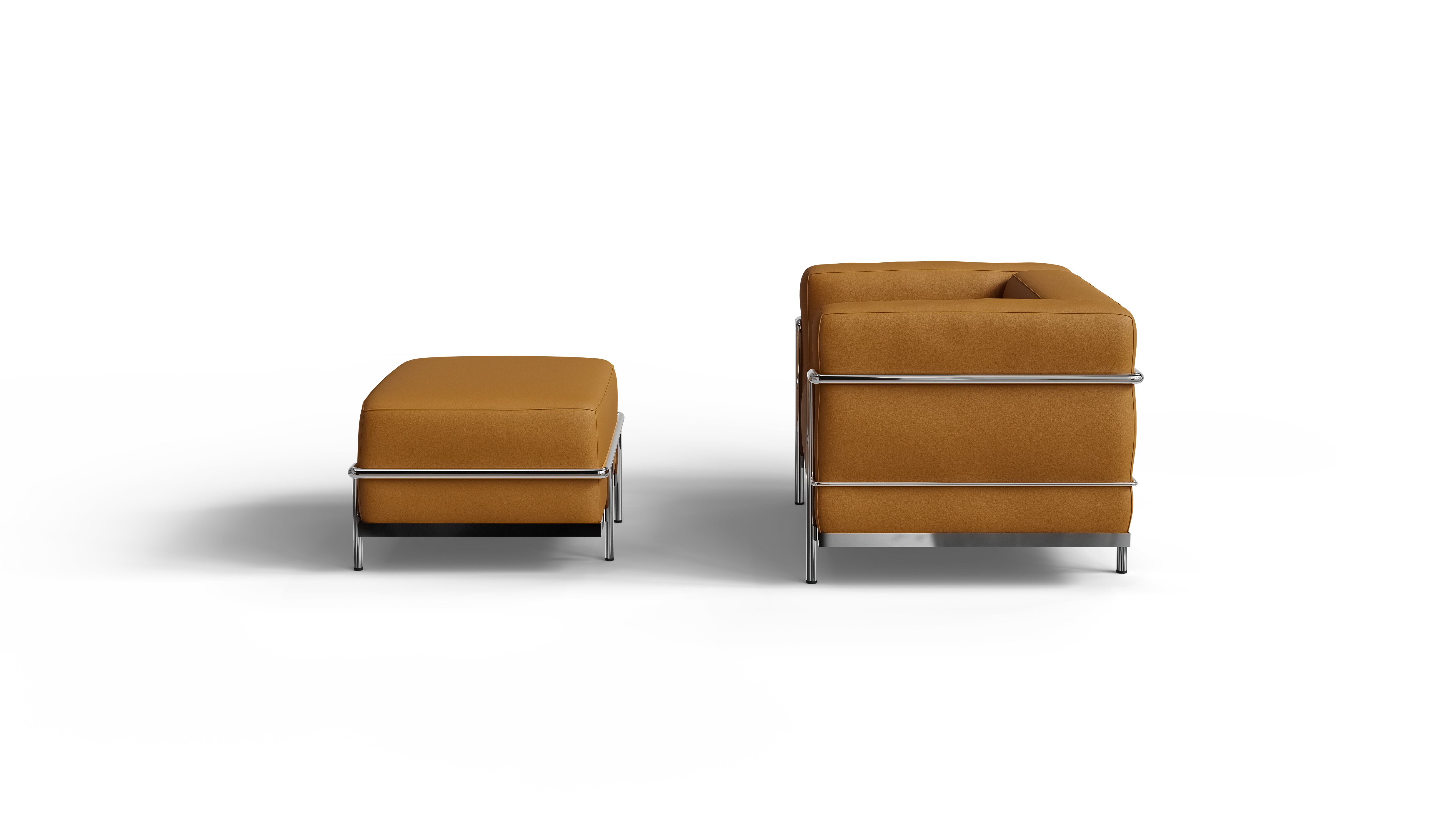 The Archetype Forms LC3 Confort Grand Modèle Armchair & the LC2 Confort Modèle Ottoman are faithful reproductions of the original Le Corbusier, Charlotte Perriand, and Pierre Jeanneret LC3 Fauteuil Grand Confort, Grand Modèle Armchair & 2 Ottomane.