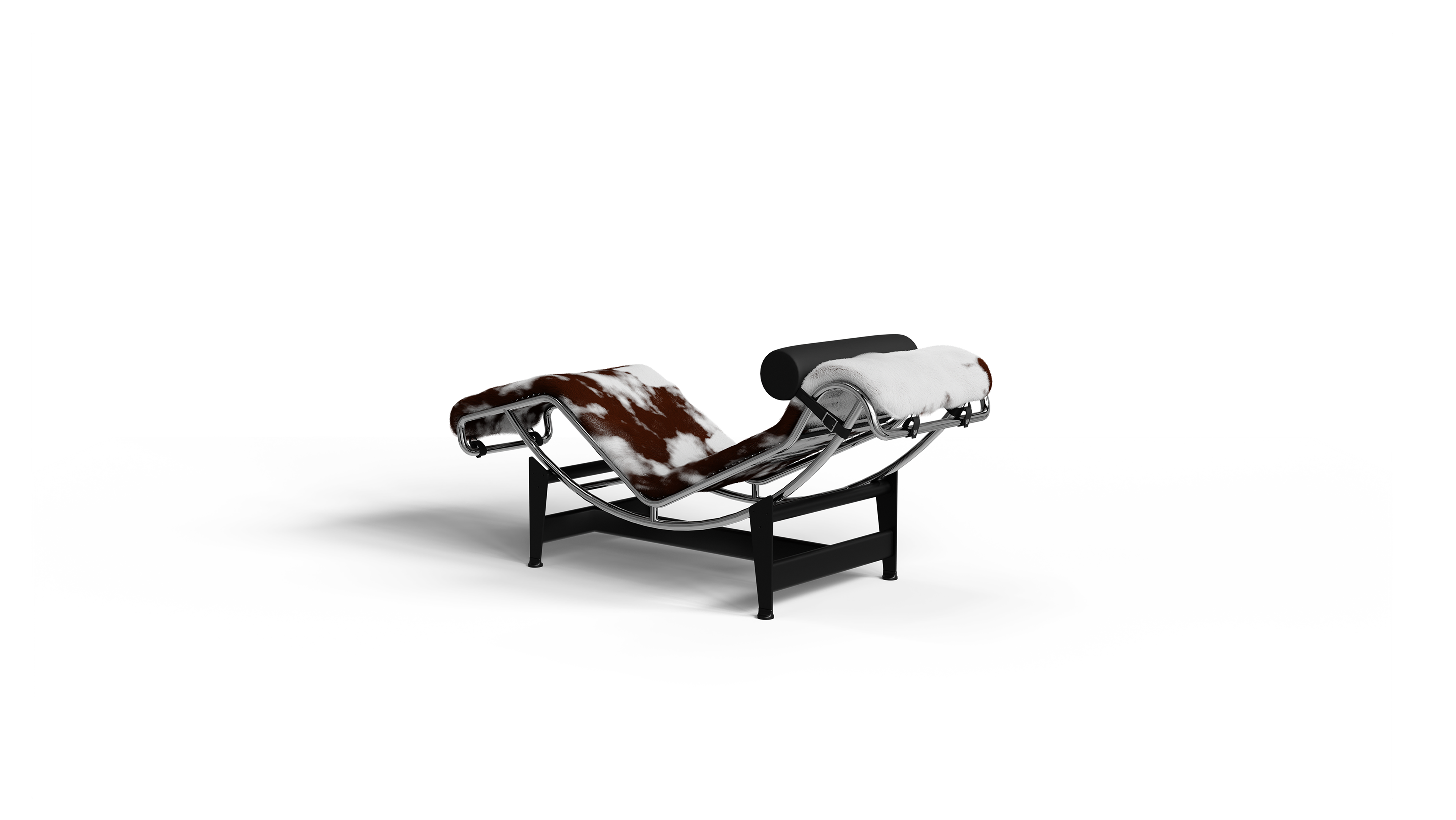 The Archetype Forms LC4 Chaise Lounge: Haired Hide is a faithful reproduction of the original Le Corbusier, Pierre Jeanneret, and Charlotte Perriand LC4 Chaise Lounge, also known as 4 Chaise Longue à Réglage Continu. It is a tribute to their enduring legacy. This item is not manufactured by or affiliated with the original designer(s) and associated parties.