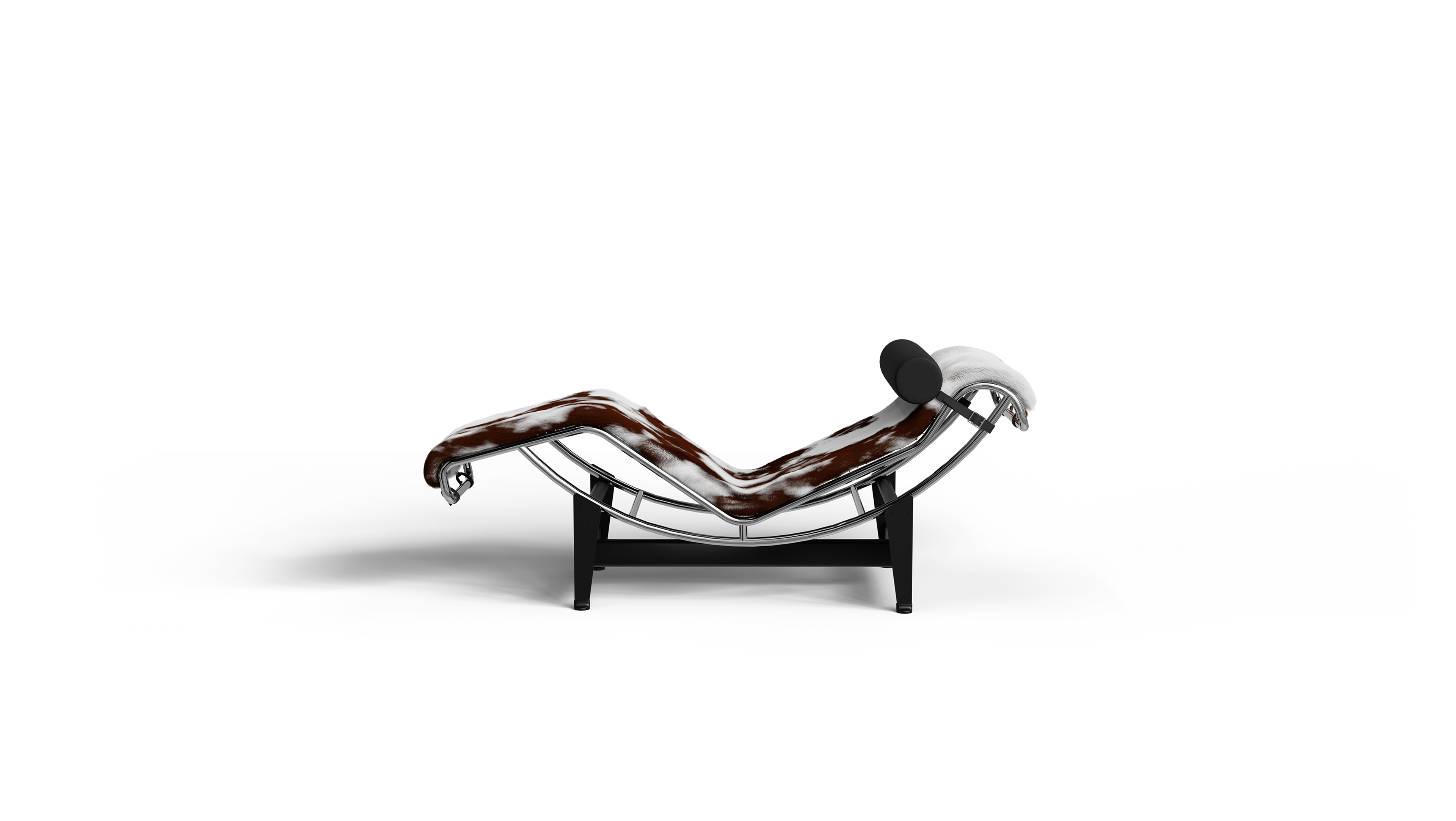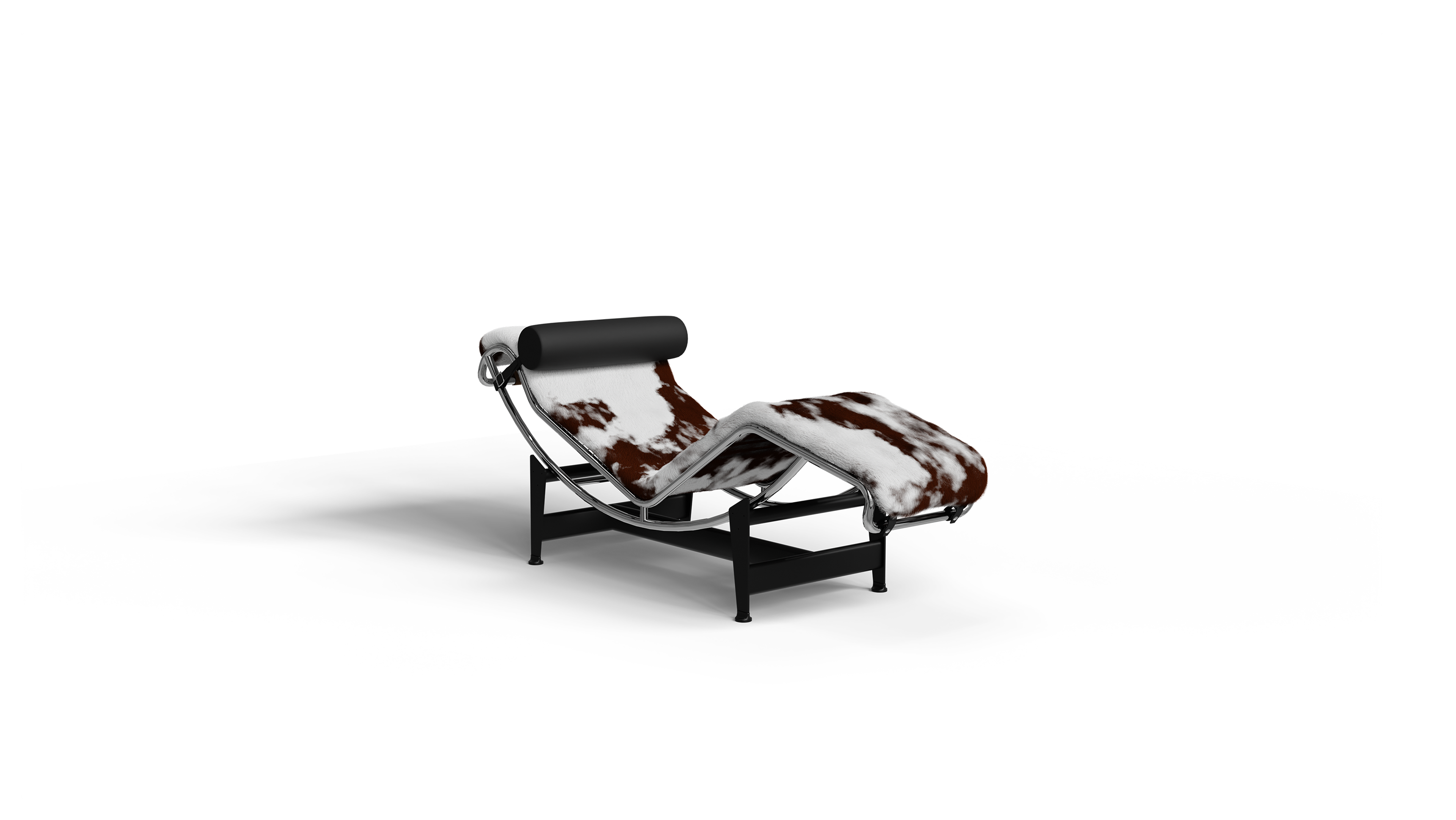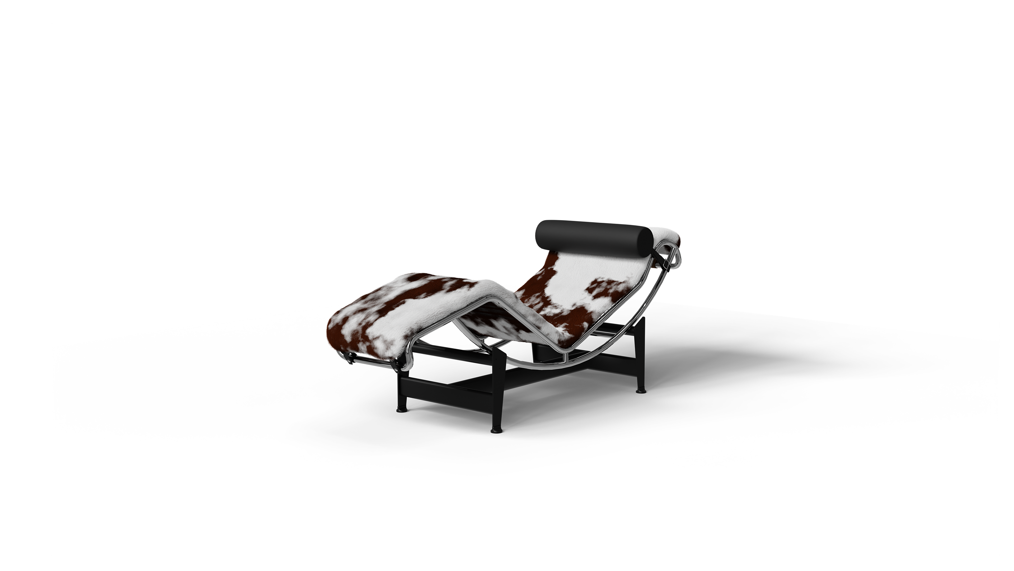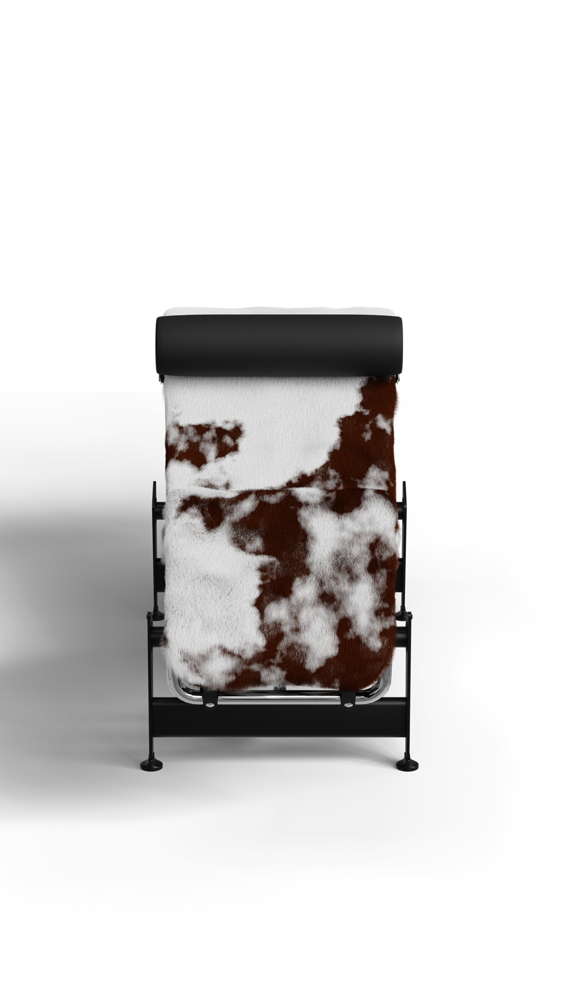 The Archetype Forms LC4 Chaise Lounge: Brown & White Haired Hide is a faithful reproduction of the original Le Corbusier, Pierre Jeanneret, and Charlotte Perriand LC4 Chaise Lounge, also known as 4 Chaise Longue à Réglage Continu.