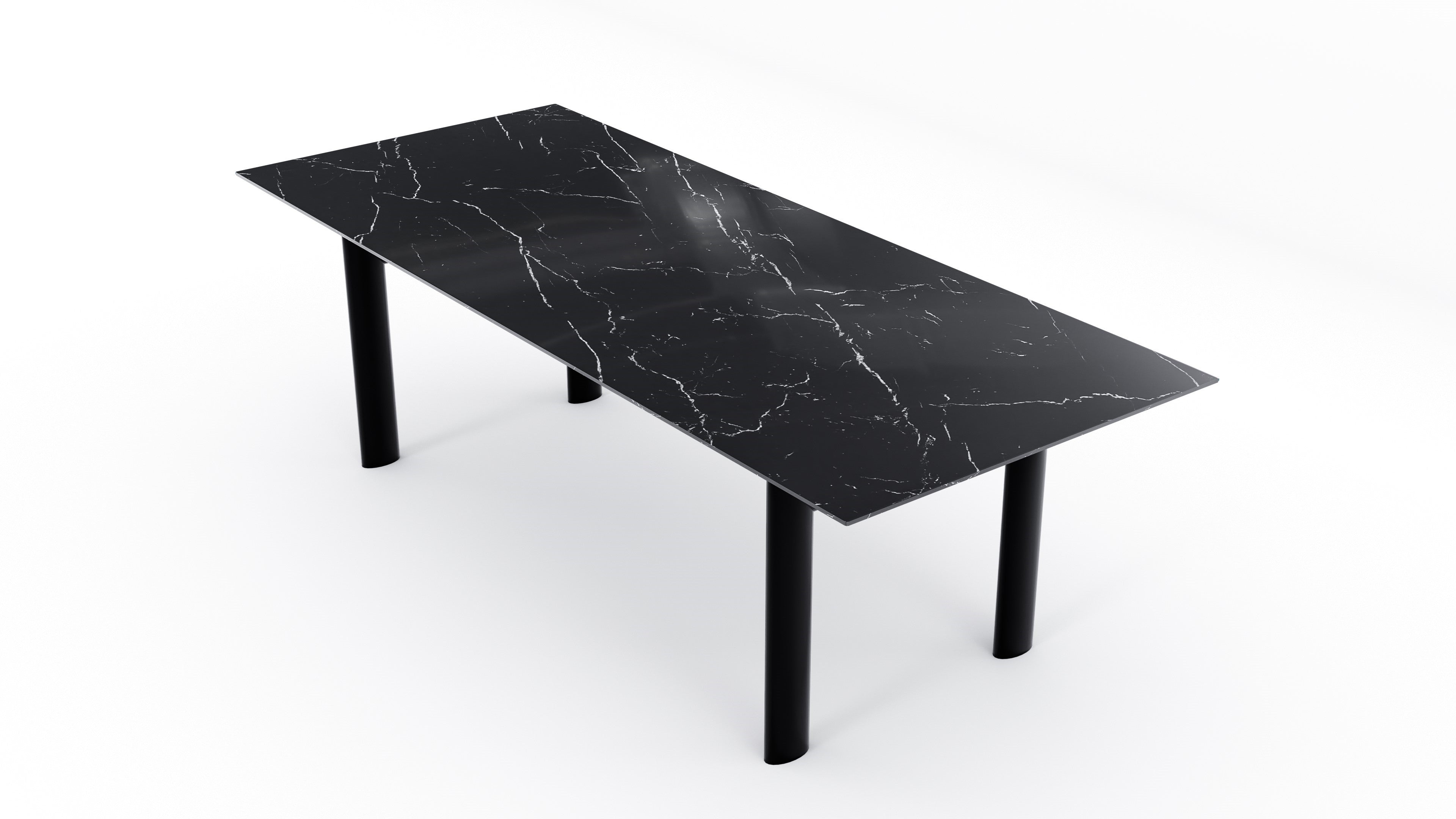 Shown with Black Marquina Marble Top with Polished Finish on Powder Coat Black Steel Base.