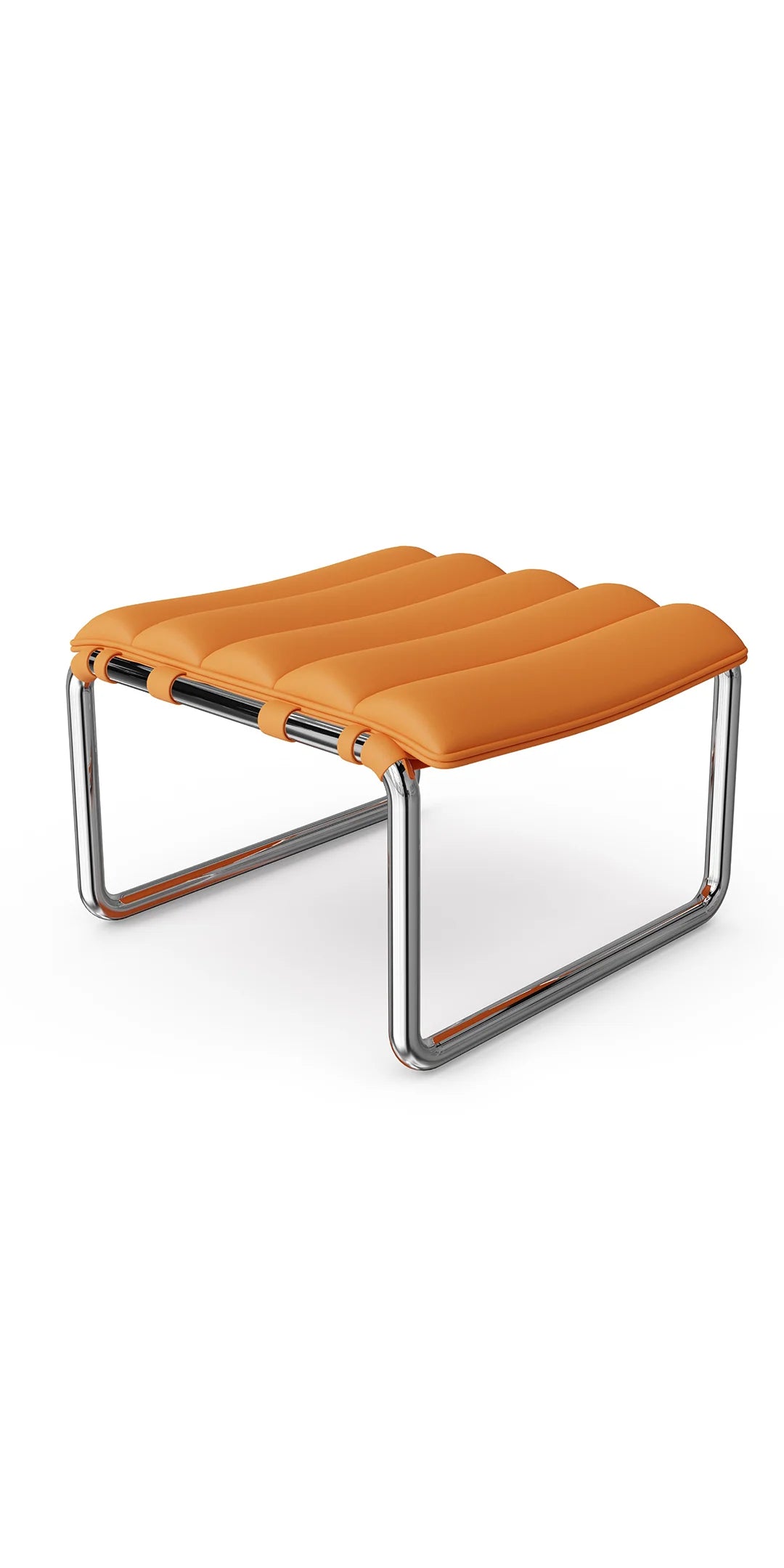 The MR Stool is a footrest for the MR Lounge Chair, impromptu seating, or a soft table for books and magazines.