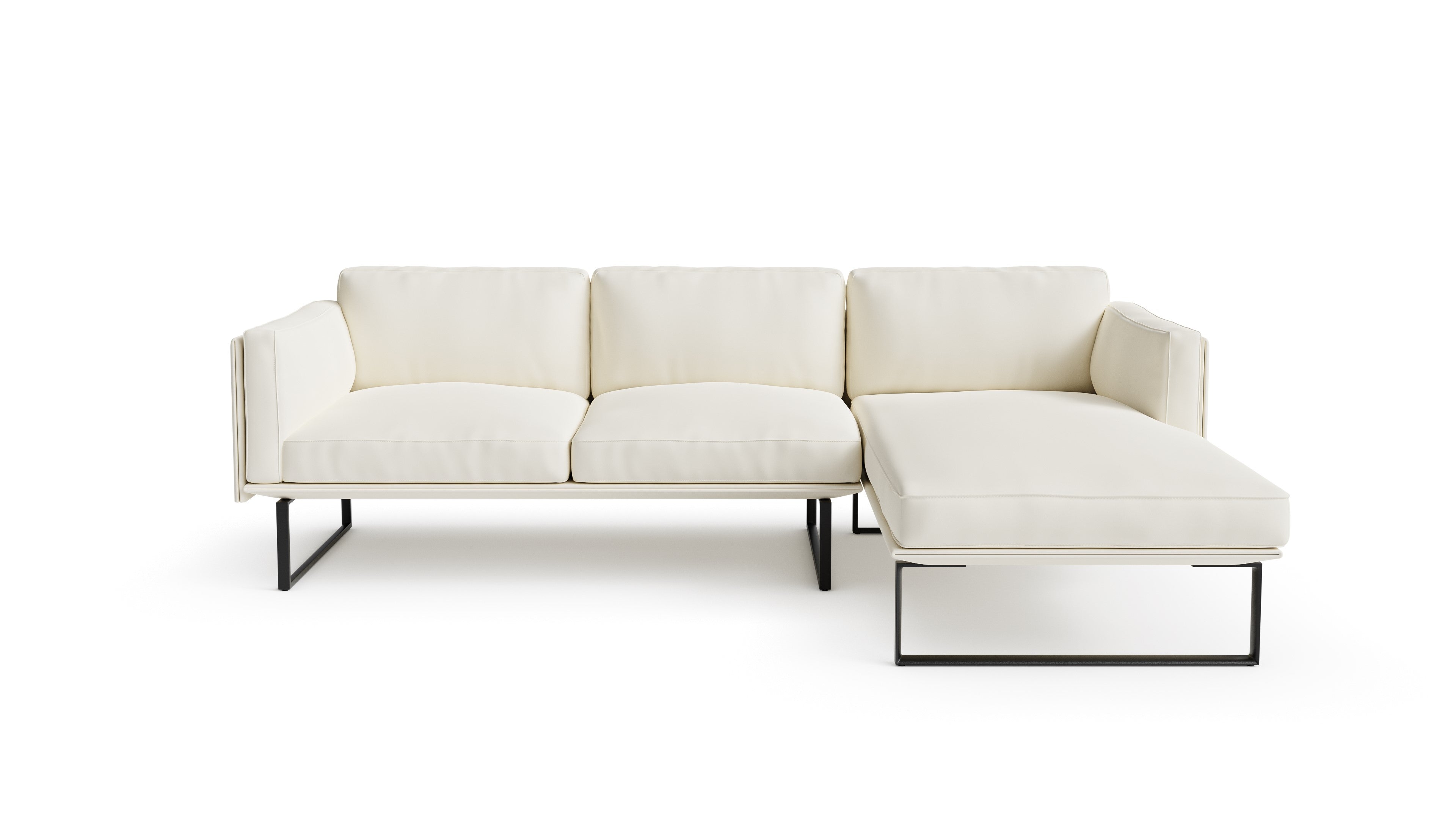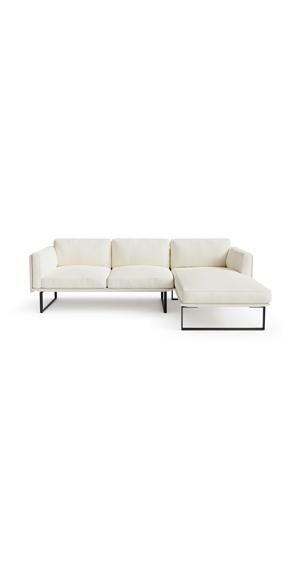 The Otto -Seat Sofa with Chaise is part of the Otto modular sofa series. Its extruded aluminum base provides stability and durability, while variable-density foam cushions offer support and comfort.