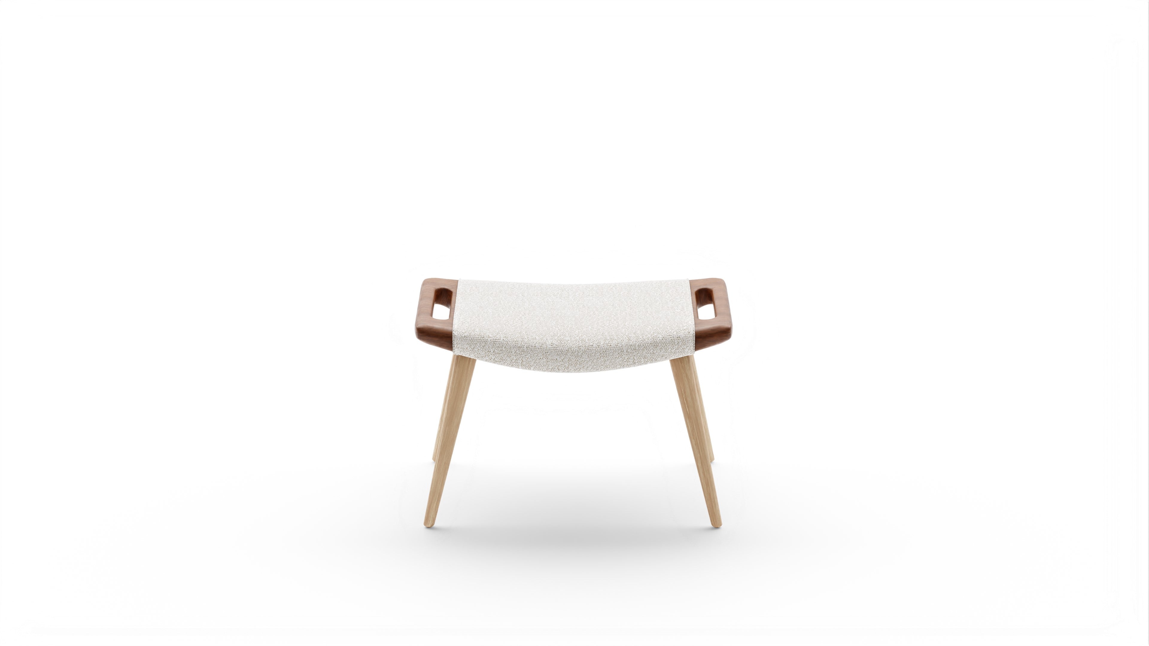 The Papa Bear Ottoman serves as a footrest, impromptu additional seating, or a small table as needed, following Wegner's philosophy of combining functionality and modernist principles.