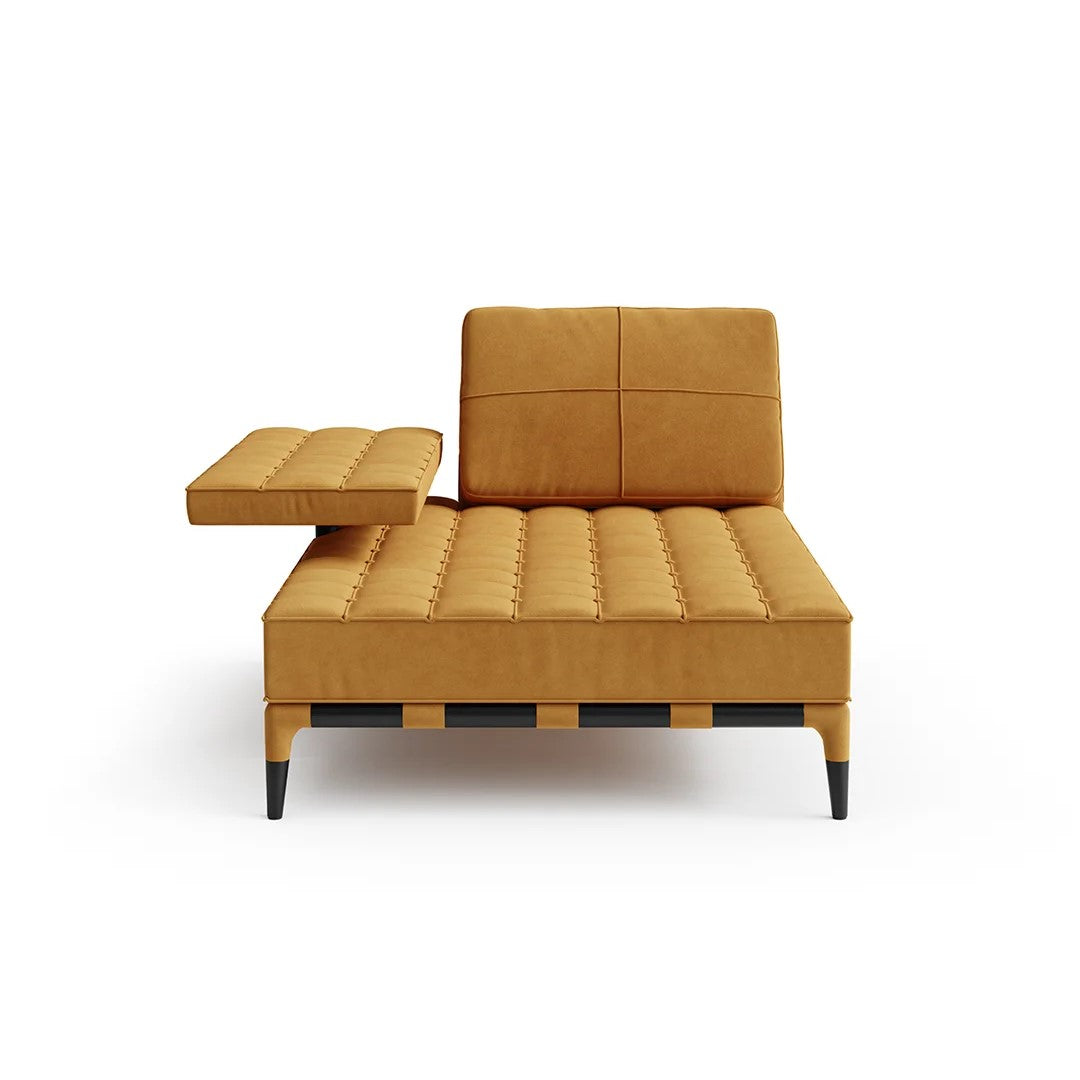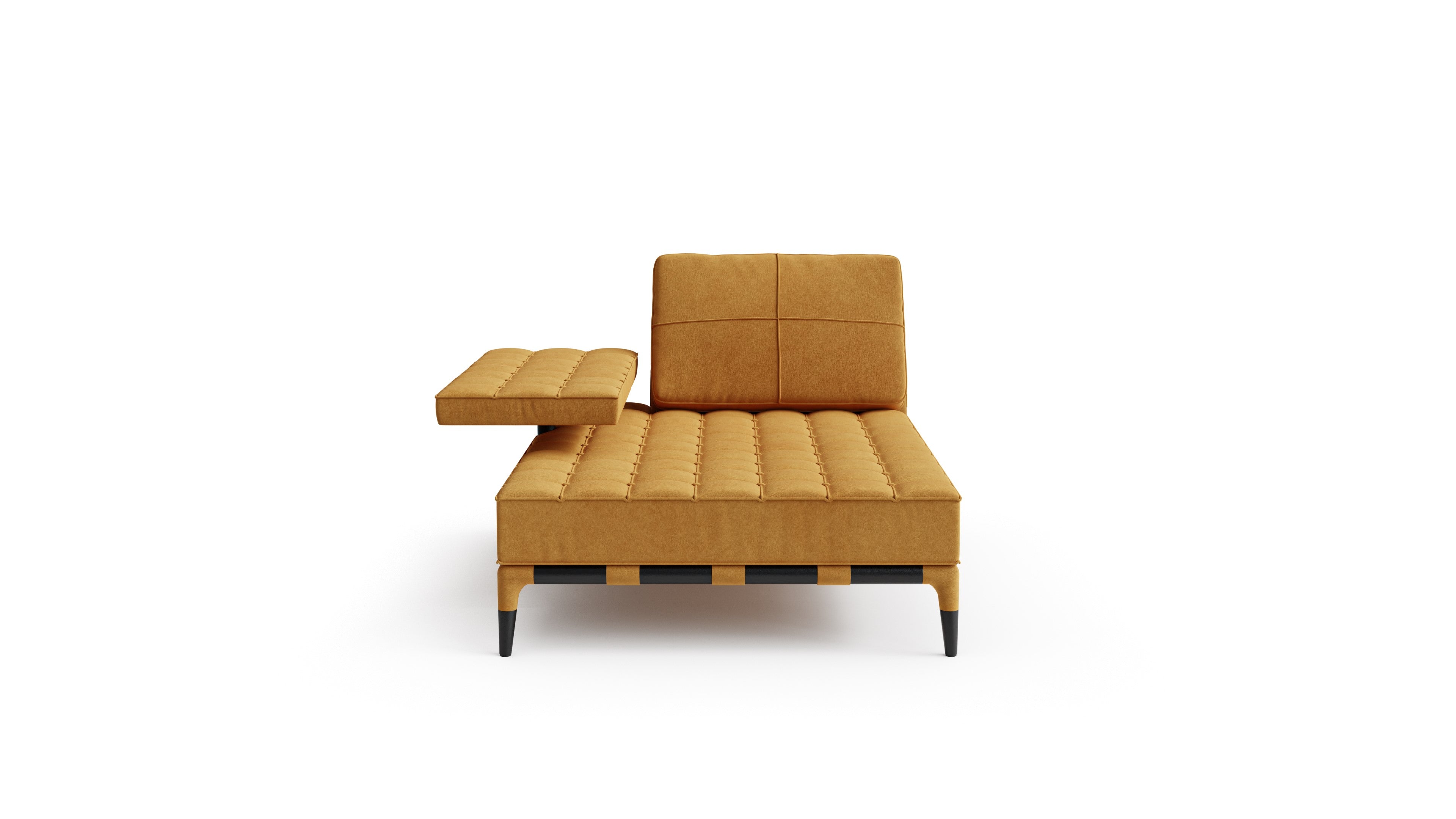 Part of the larger Privado Series, this lounge chair's unique, adjustable height armrest doubles as a side table thanks to its strong support, firm padding, and generous dimensions. Its elongated seating gives it daybed functionality in an armchair. View the full Privado Series.