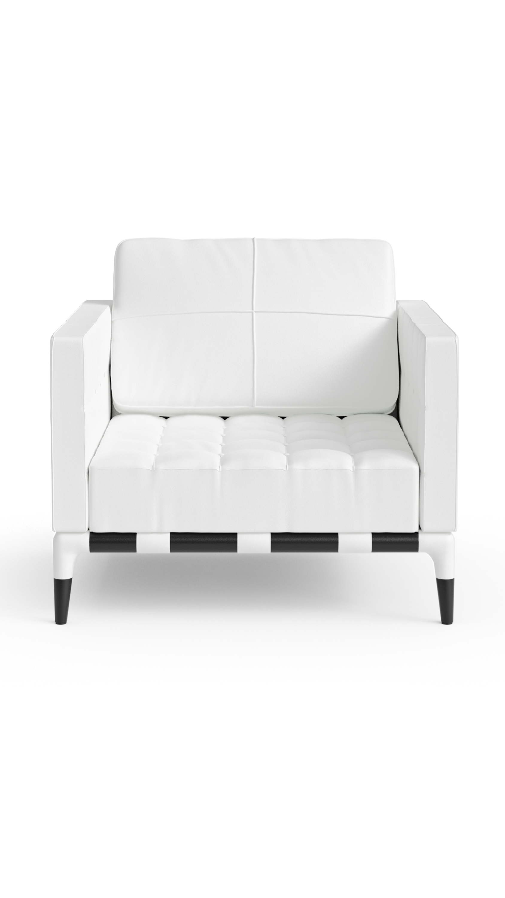 Recognized by its unique padded tuft and visible straps resting on formed aluminum, the Privado brings Parisian Postmodernism into your space.