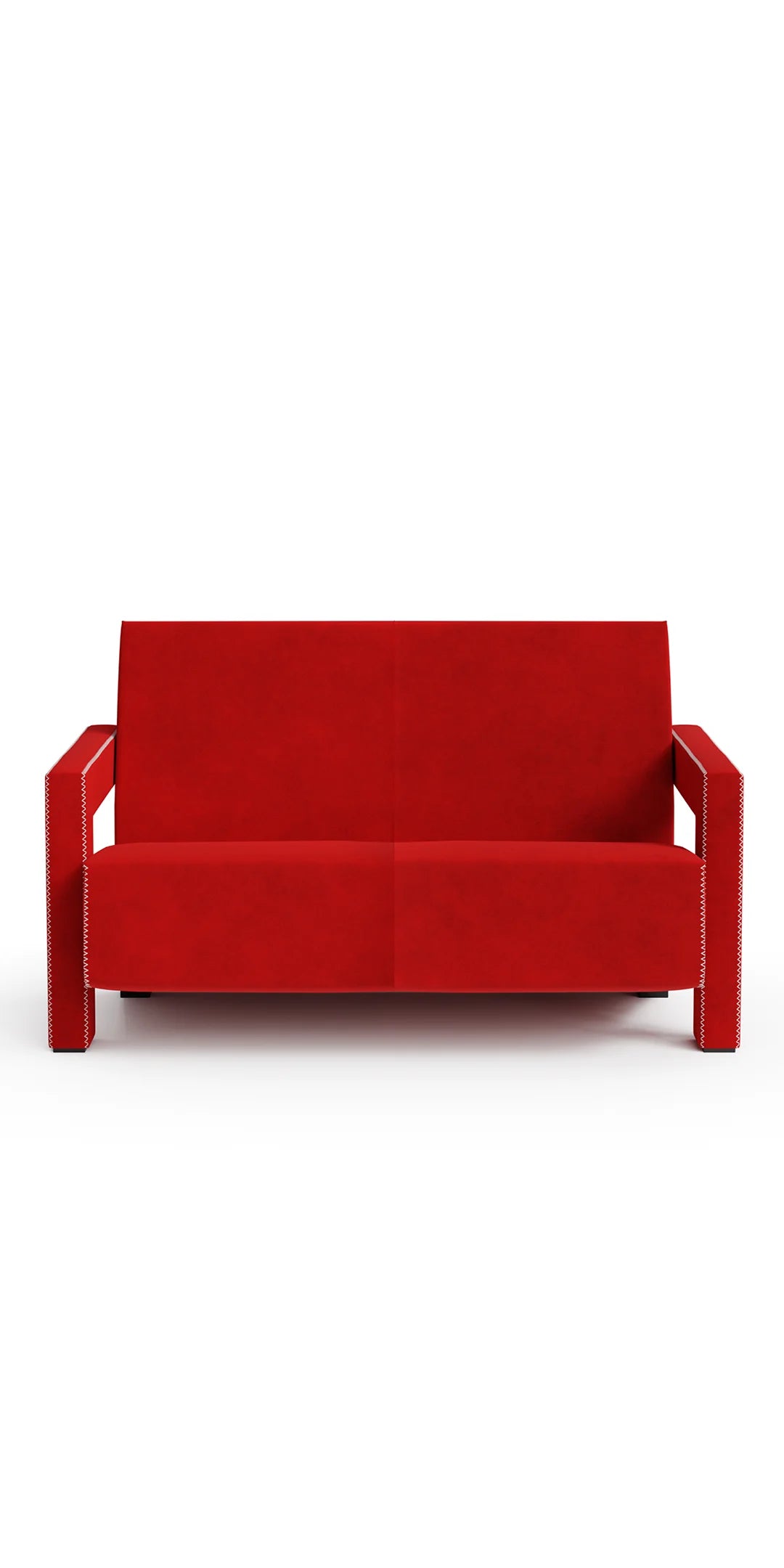 The Utrecht Loveseat Sofa was originally designed by Gerrit Thomas Rietveld for the Metz & Co department store in Amsterdam. Rietveld's design is influenced by the Neoplastic movement, featuring geometric forms and a focus on comfort.