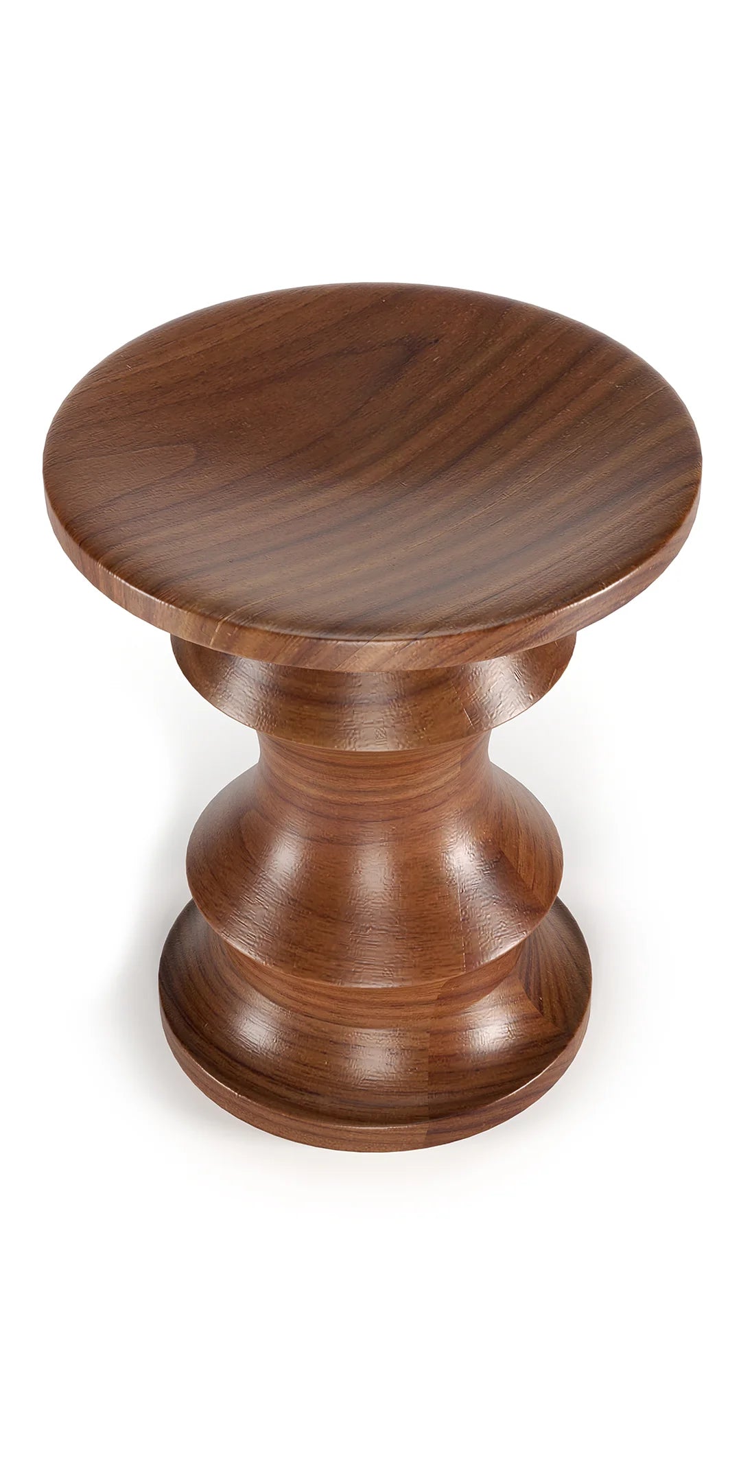 The Archetype Forms Walnut Stool: One is a faithful reproduction of the original Charles and Ray Eames Walnut Stool A, also known as the Charles & Ray Eames Turned Stool A.